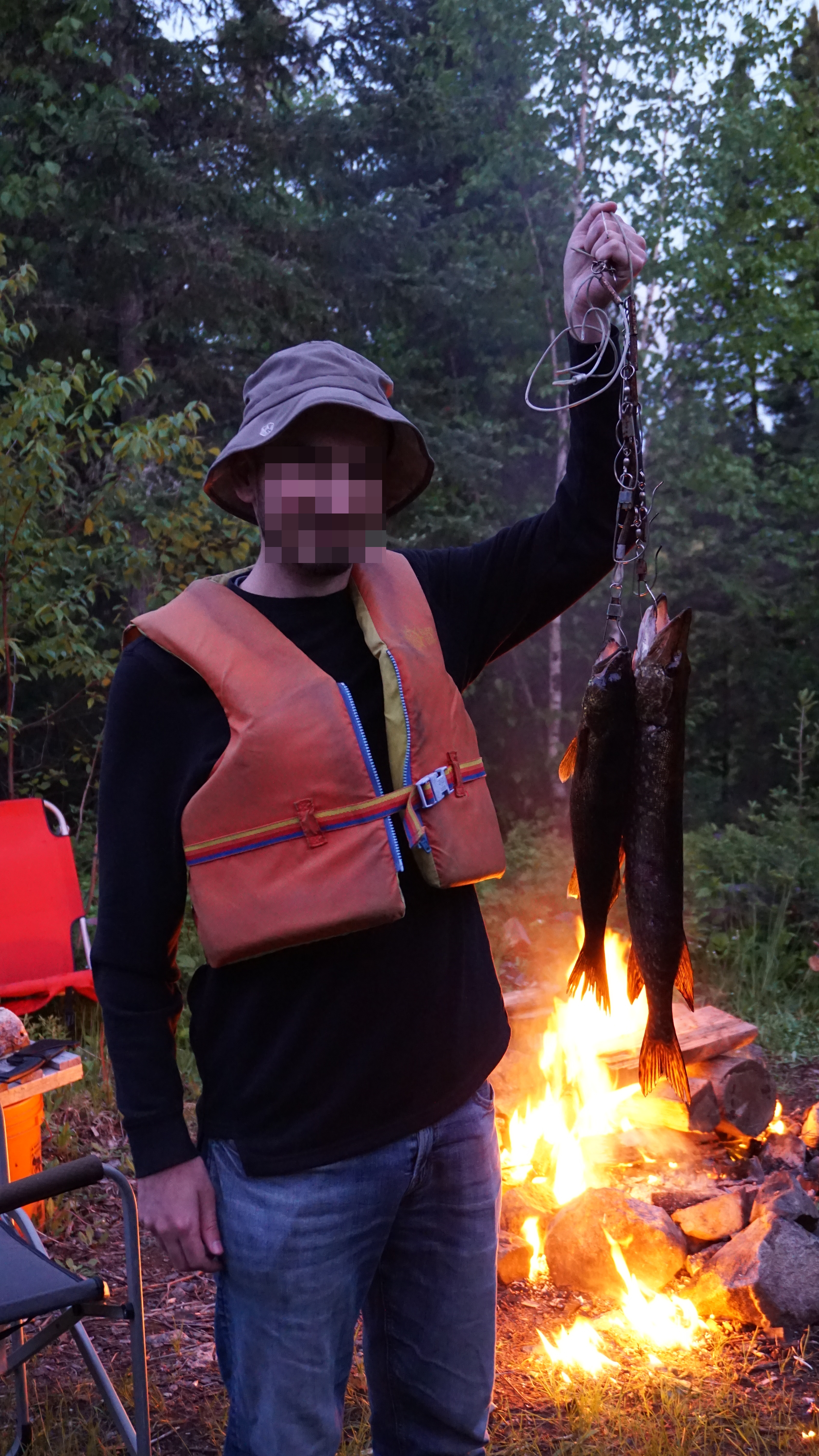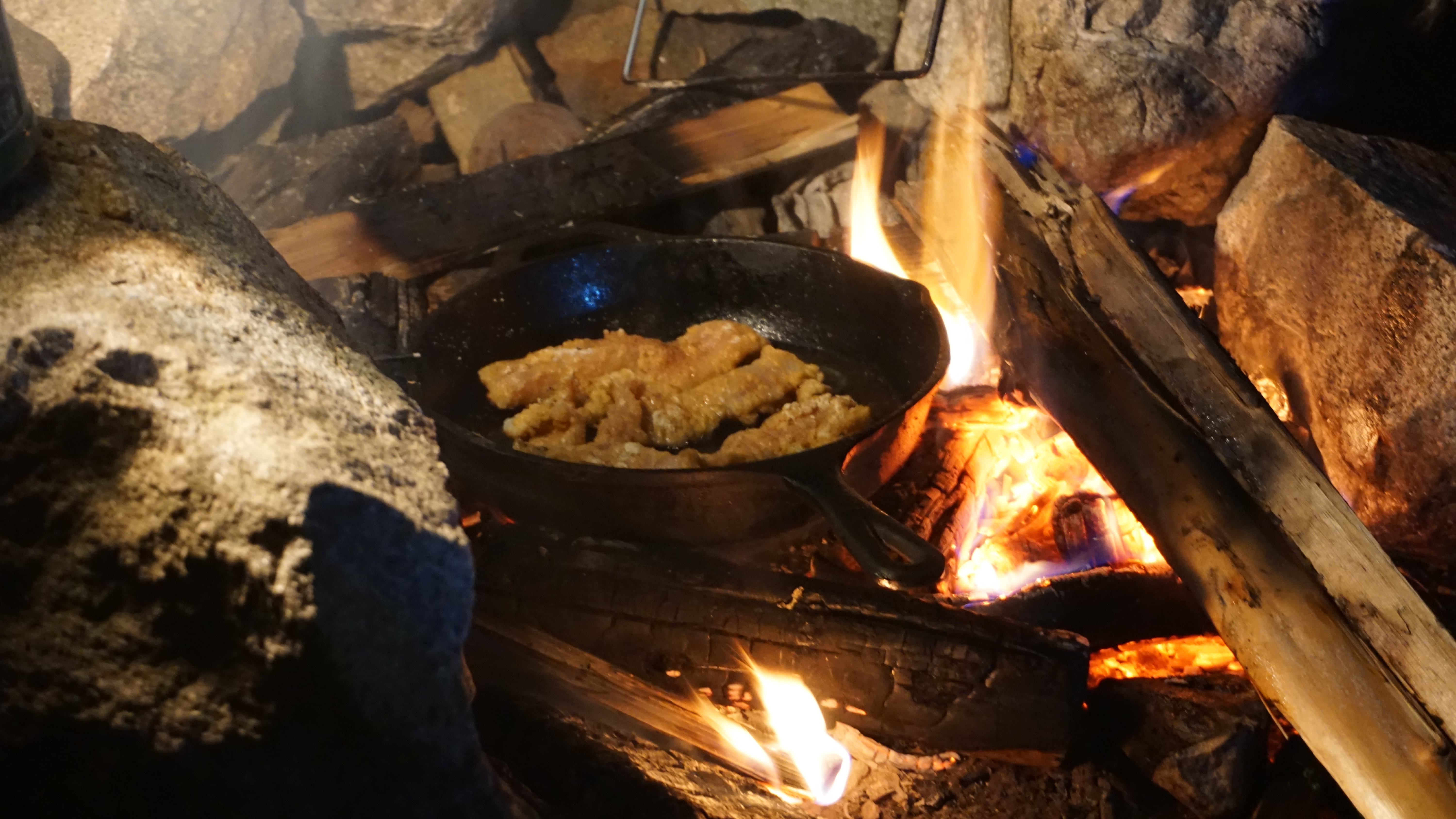 Didn’t take us long to setup, just the usual stuff, gathering wood, assemble the tents and storage area and get the fire going. Afterwards, we just went and did some fishing till before the evening.